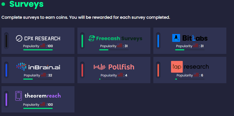 If you’re running short you can do a survey or two to get you over the threshold. If you just want some guaranteed small earnings go with inBrain, most of their surveys, even if you get rejected, will pay you 12 coins. The popularity of these change and you can give any of them a go. Also don’t forget if you get 1000 coins from surveys it will reset your daily ladder and you can get another bonus from it.